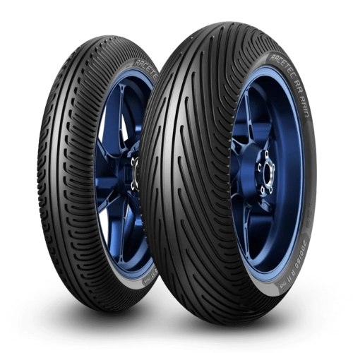METZELER Racetech RR Rain racing tyres are the ultimate competition tyres for wet conditions thanks to 100% silica grip and deep tread grooves.