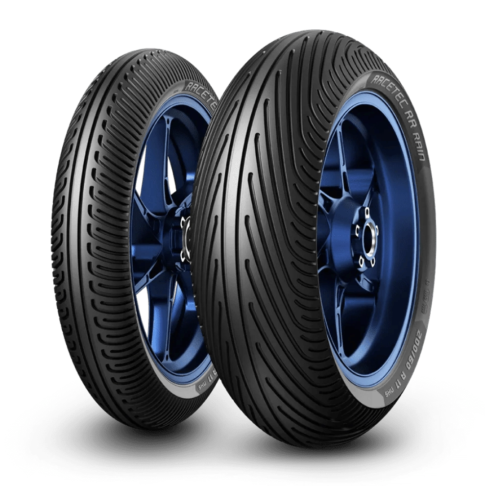 METZELER Racetech RR Rain racing tyres are the ultimate competition tyres for wet conditions thanks to 100% silica grip and deep tread grooves.