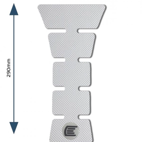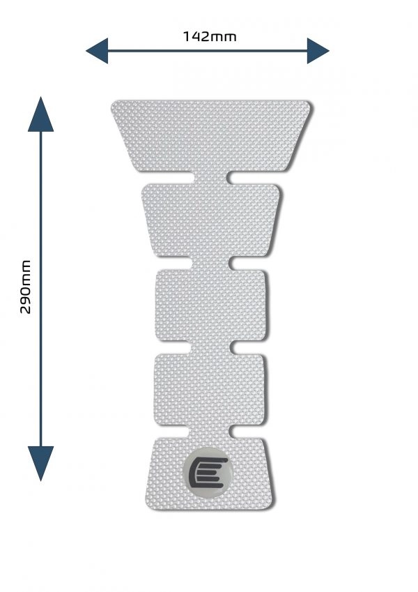 Universal Eazi-Grip tank pad, Model E. The product is designed to protect the tank from rubbing against the motorbike's paintwork. The different models are designed for bikers who don't need grip, but still want to protect their tank.