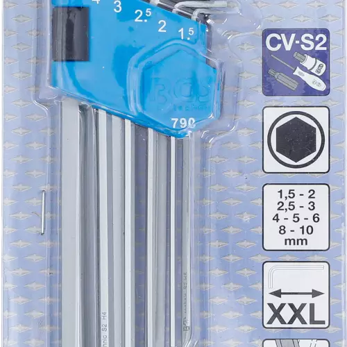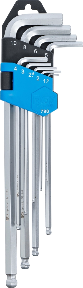 extra long hex/inner hexagon wrench set with ball head 1.5 - 10 mm 9 pieces BGS