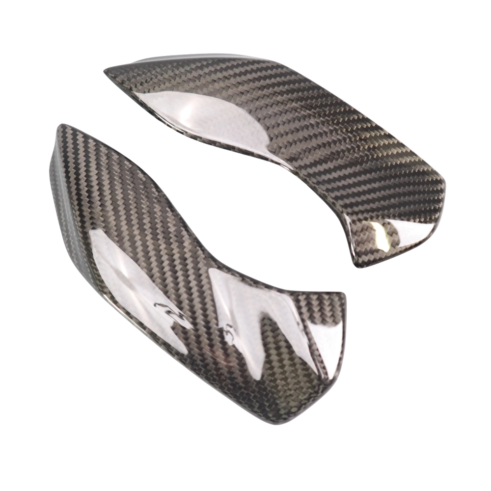 Headlight holder covers carbon Yamaha MT09 2021-2023 - MT09 SP 2021-2023, delivered without screws or other fixings. The holes are already drilled on the carbon motorbike fairings. The parts are available in glossy or matt varnish.