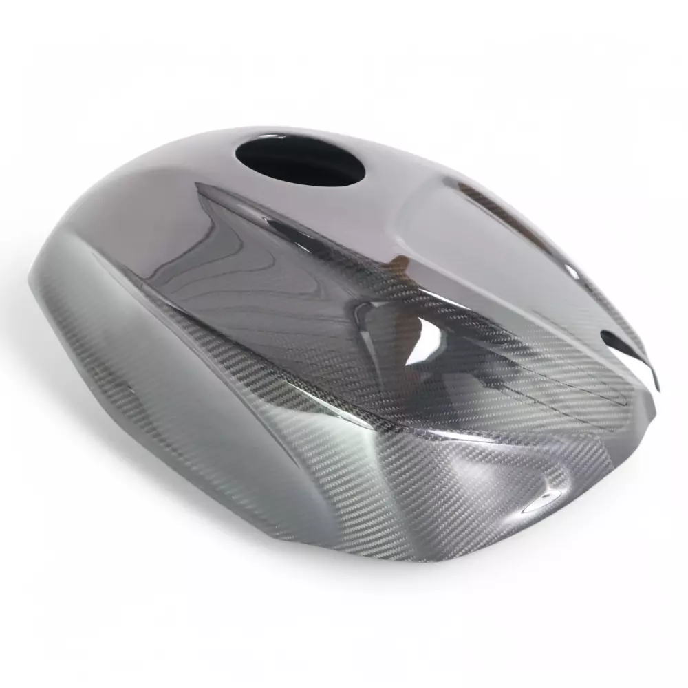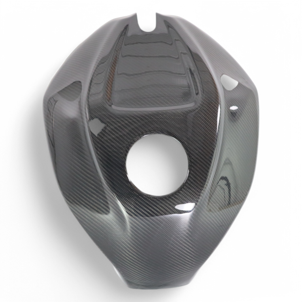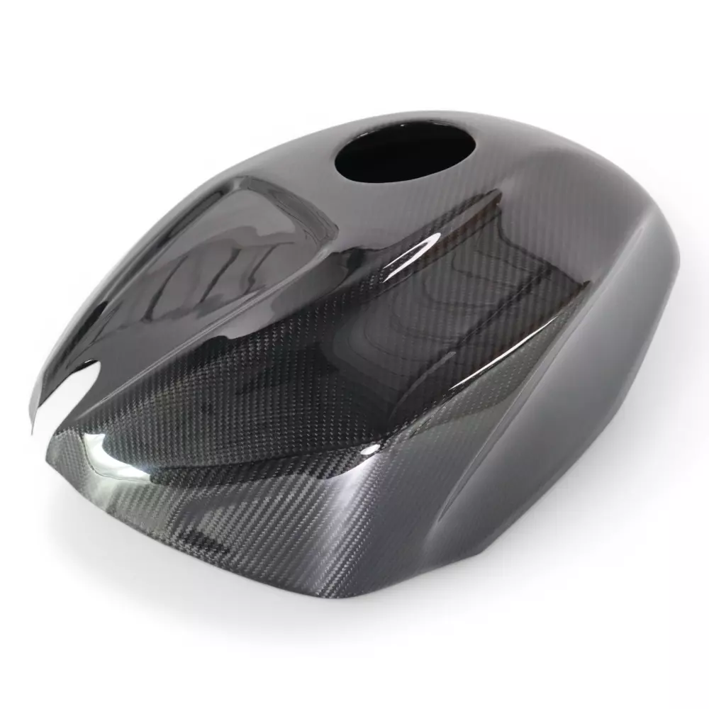 Tank cover carbon APRILIA RSV4 - TUONO V4 2021-, delivered without screws or other fixings. The holes are already drilled on the carbon motorbike fairings. The parts are available in glossy or matt varnish.