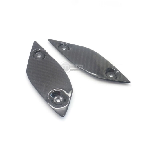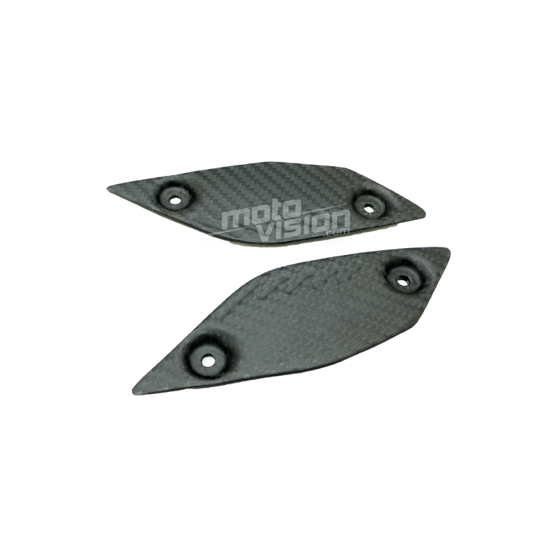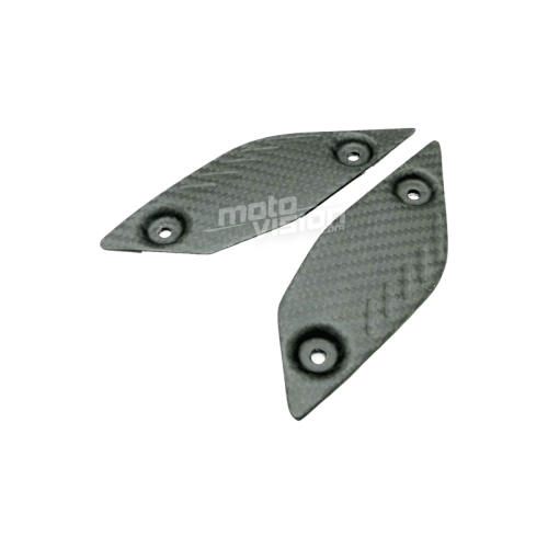Carbon Heel Plates Yamaha FZ8, delivered without screws or other fixings. The holes are already drilled on the carbon motorbike fairings. The parts are available in glossy or matt varnish.