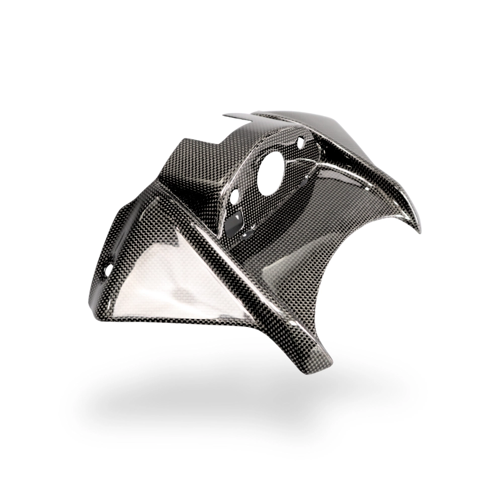Carbon Tank cover Suzuki GSR 750 2011-2016, delivered without screws or other fixings. The holes are already drilled on the carbon motorbike fairings. The parts are available in glossy or matt varnish.