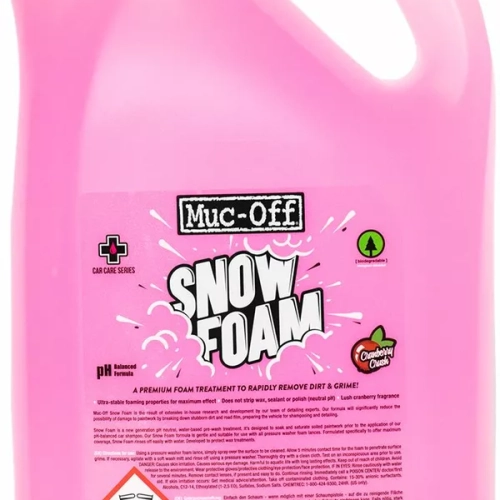 Muc-Off ‘Snow Foam’ pre-wash foam quickly removes dirt and grime thanks to its ultra-stable foaming properties for maximum effect. It does not remove protective waxes or coatings (PH neutral) and leaves a cranberry fragrance.