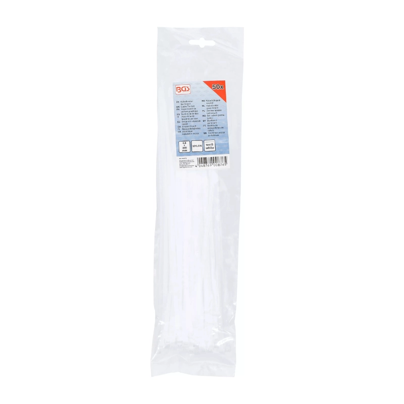 Assortment of white plastic collars 4.8 x 300 mm 50 pieces BGS