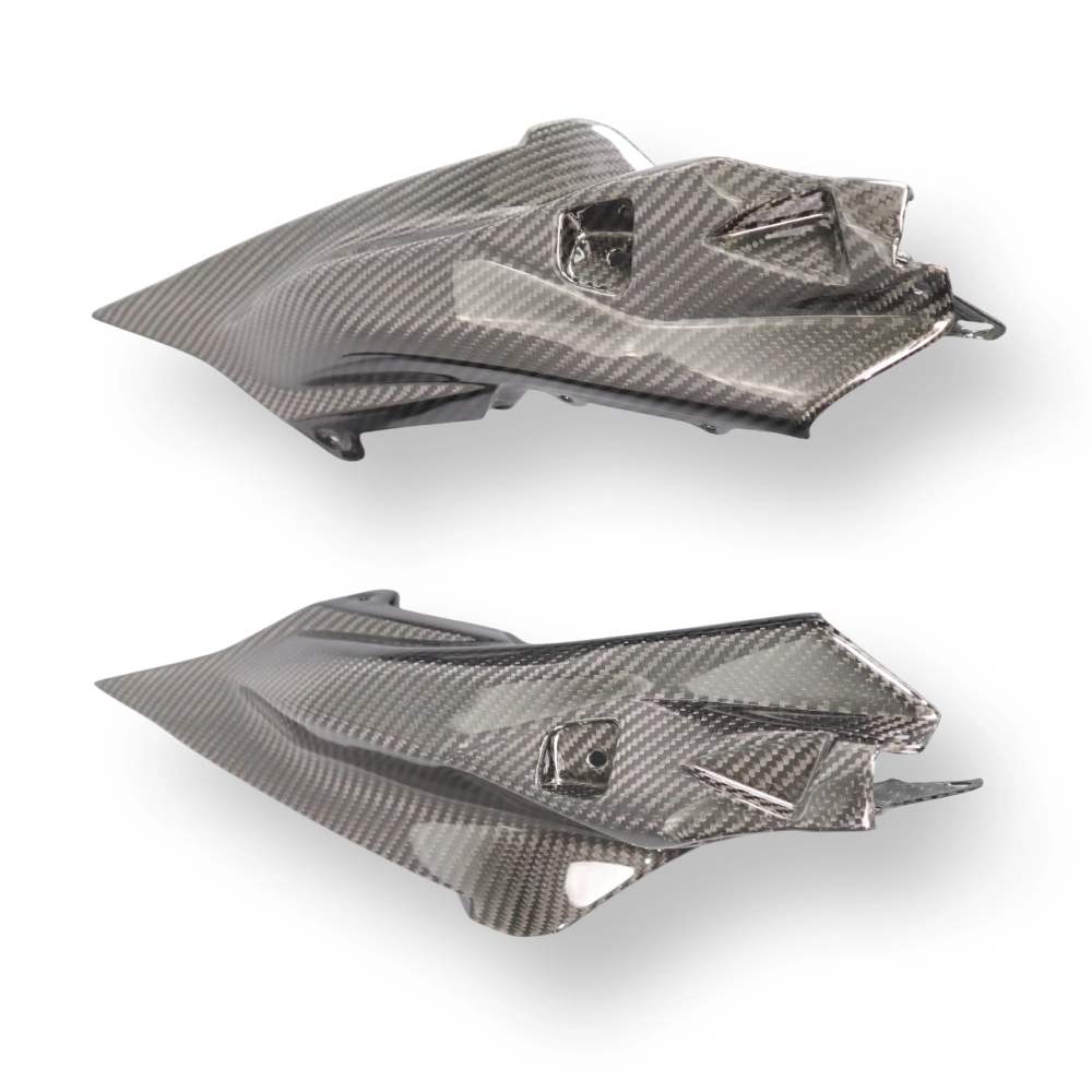 Carbon Fiber Tailer Side Covers (inside part) Yamaha R7 2021- to be mounted directly on the original mounting points of your bike to replace the original fairing. The carbon parts are delivered without screws.