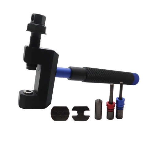 Simplify the installation and removal of your motorcycle chains with this robust and versatile tool, compatible with chain sizes 420 to 530. Ideal for both enthusiasts and professionals.