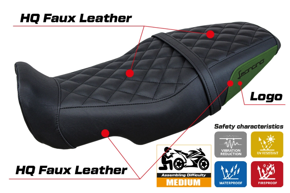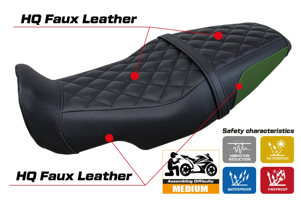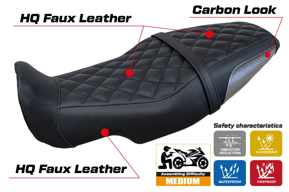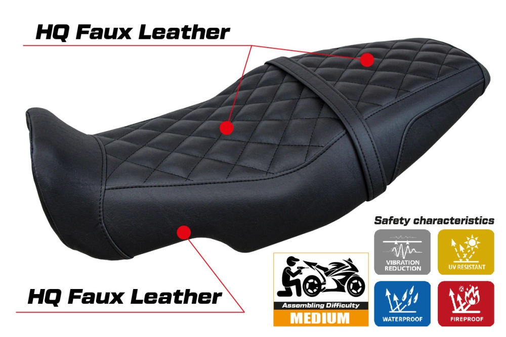 - Ultragrip: This type of covering is particularly suitable for sport bikes where a greater grip on the seat is required. The material is extremely porous and is nicknamed "asphalt" because of its road-like roughness.