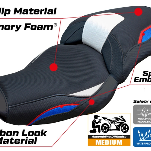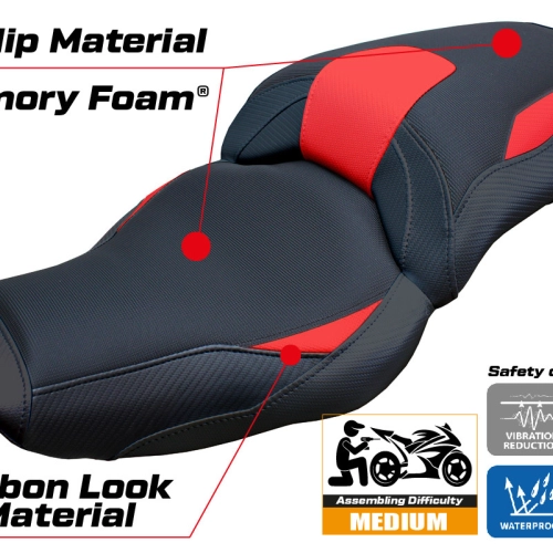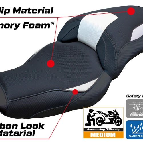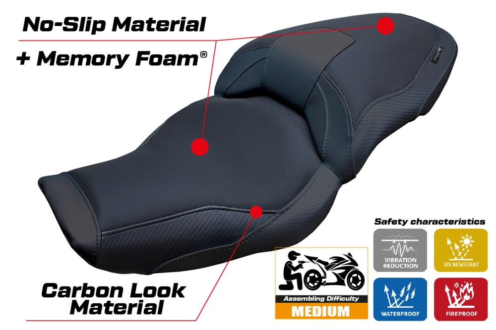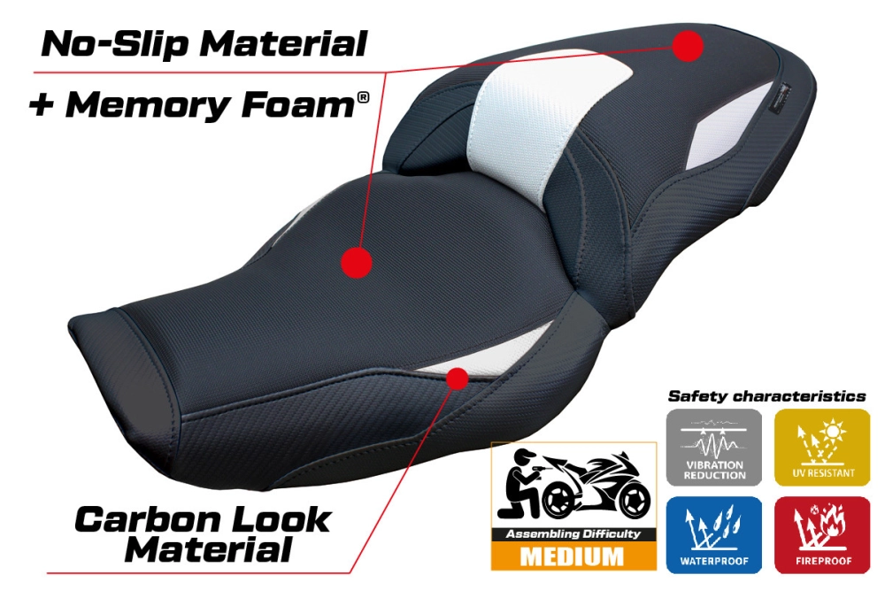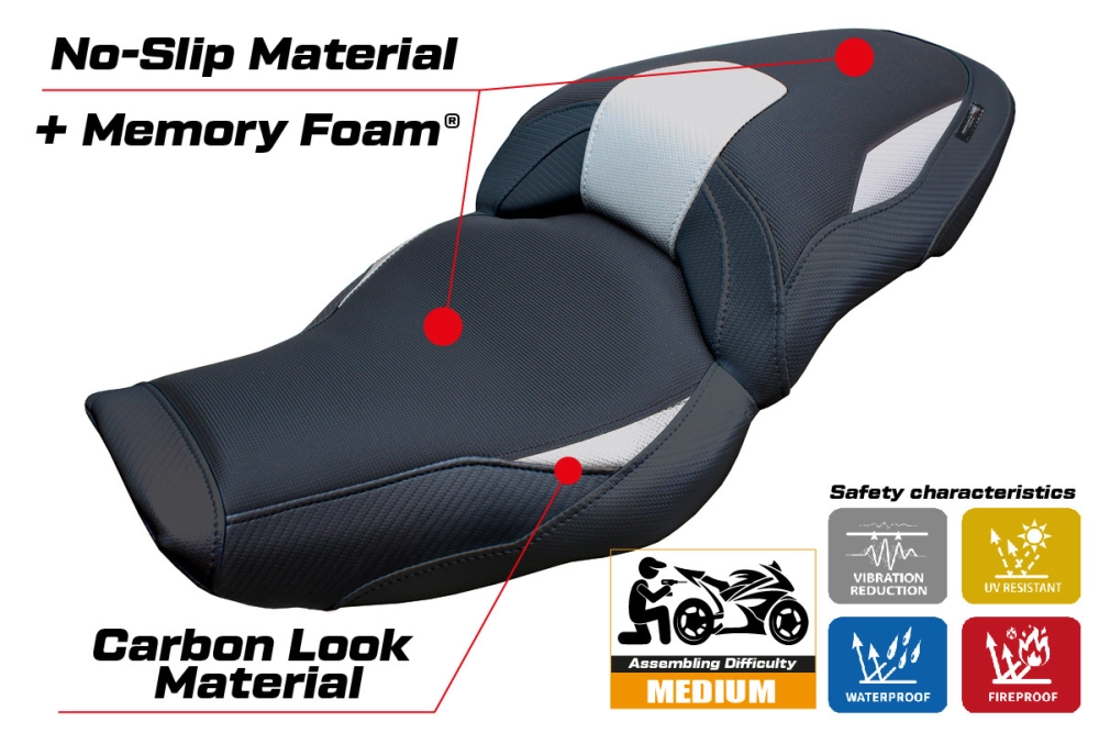 - Comfort system: This cover is on the outside exactly the same as all other covers, but is coupled on the inside with a special 2.5 cm layer of memory foam. Tappezzeria Italia is the only manufacturer to use Memory Foam technology, which improves riding comfort by reducing fatigue and vibration of the bike.