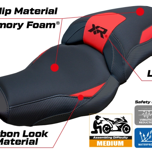 Designed to provide maximum comfort while riding, each Tappezzeria product is made of an exclusive padding, manufactured in black anti-slip material, with a black carbon look and different colours of inserts.