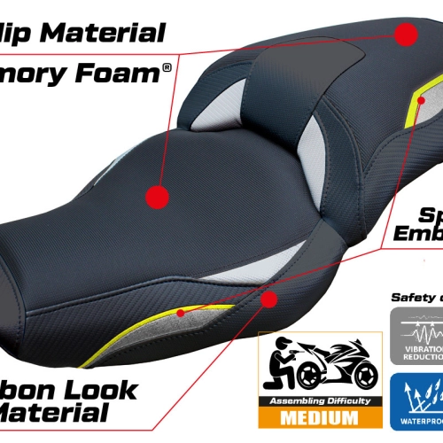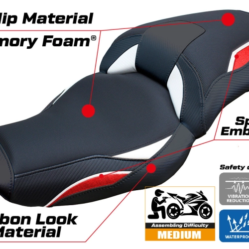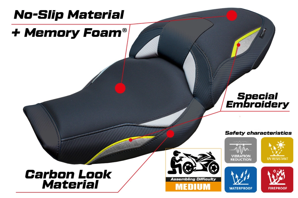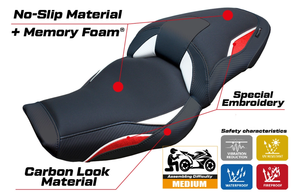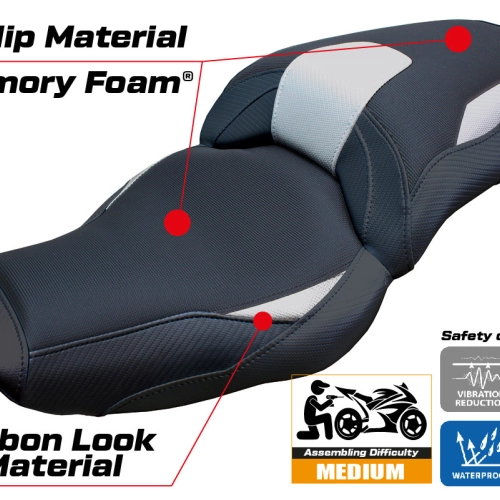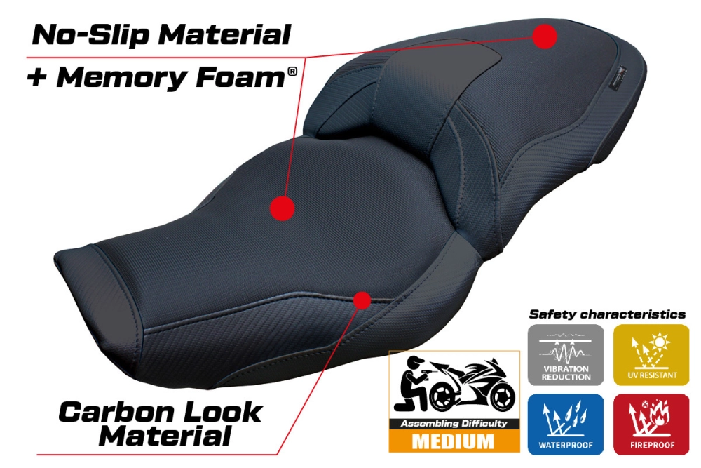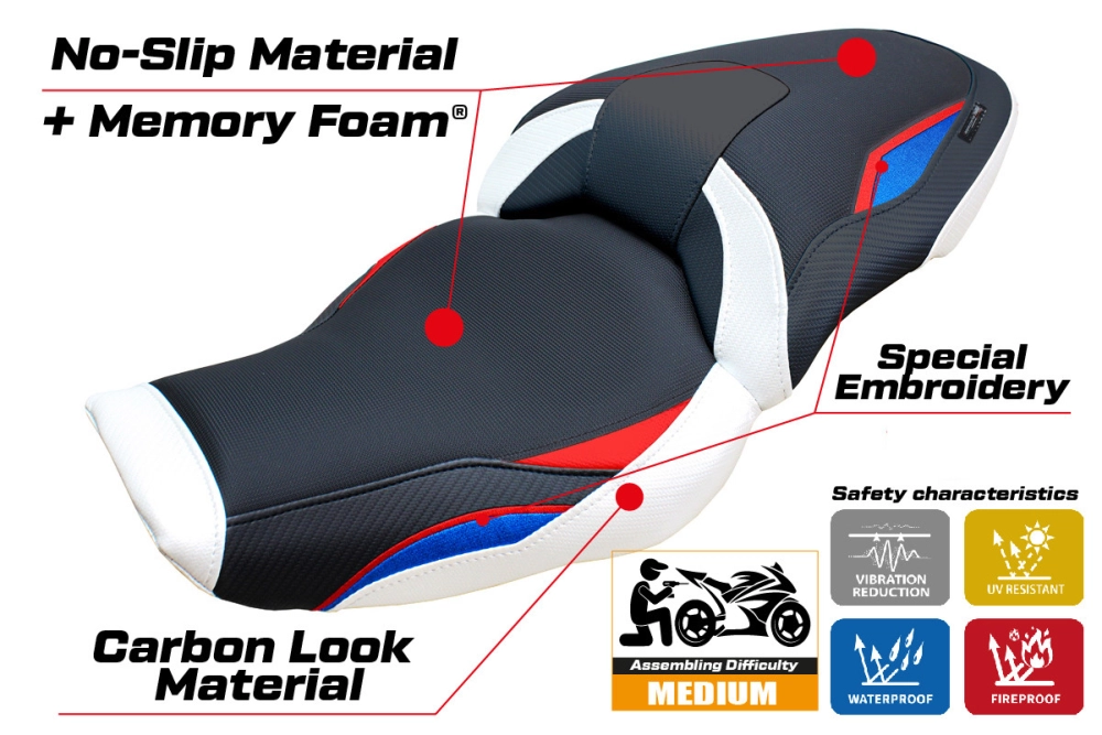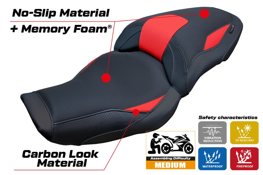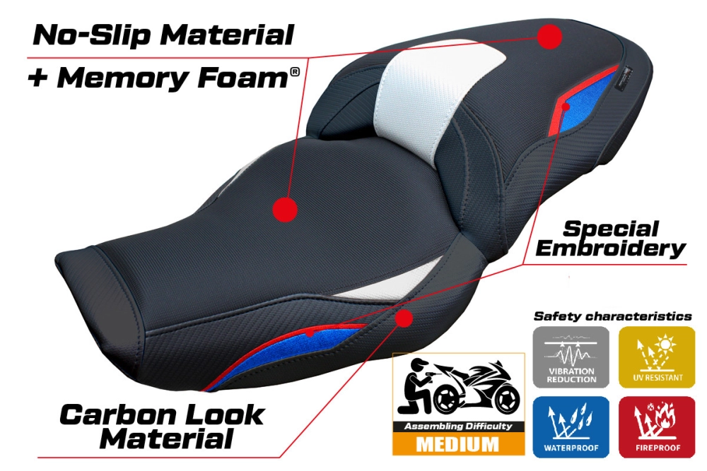 - Comfort system: This cover is on the outside exactly the same as all other covers, but is coupled on the inside with a special 2.5 cm layer of memory foam. Tappezzeria Italia is the only manufacturer to use Memory Foam technology, which improves riding comfort by reducing fatigue and vibration of the bike.