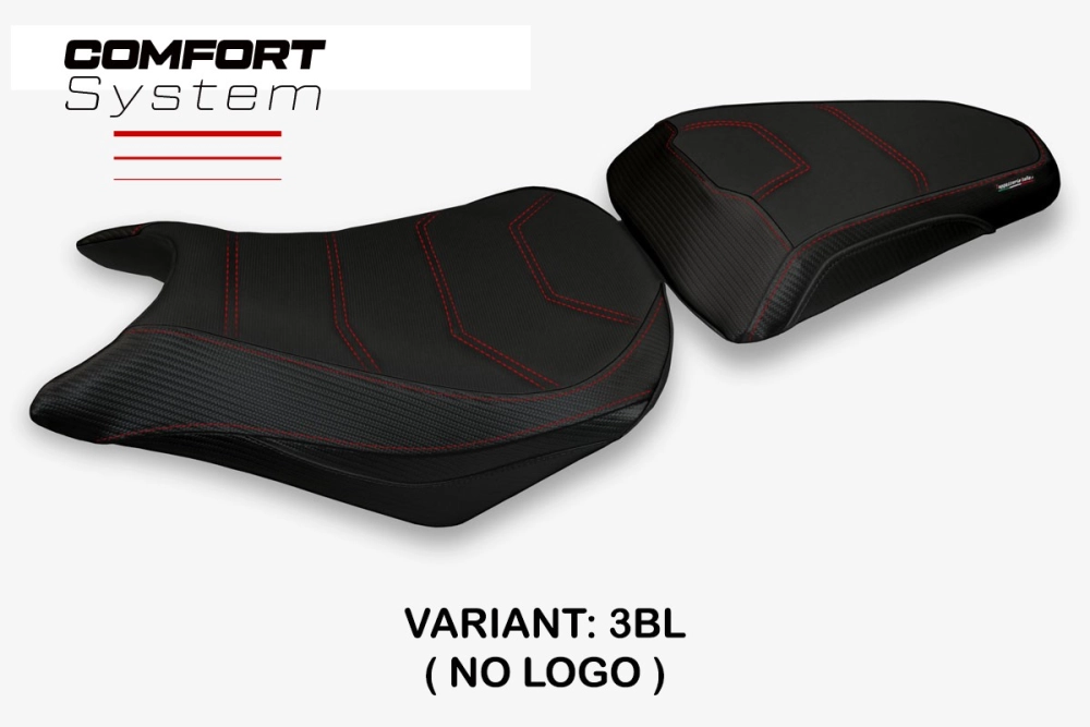 Designed to provide maximum comfort while riding, each Tappezzeria product is made of an exclusive padding, manufactured in black anti-slip material, with a black carbon look and different colours of inserts.