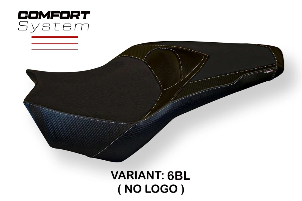Designed to provide maximum comfort while riding, each Tappezzeria product is made of an exclusive padding, manufactured in black anti-slip material, with a black carbon look and different colours of inserts.