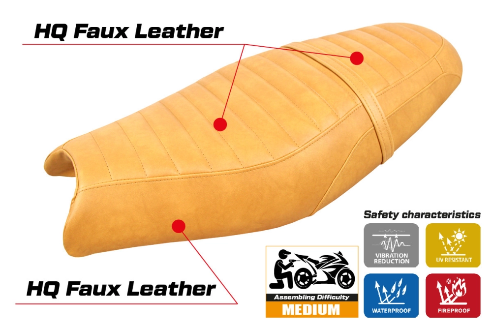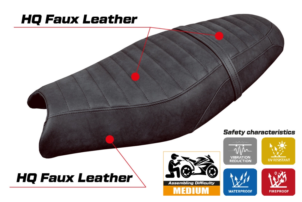 - Ultragrip: This type of covering is particularly suitable for sport bikes where a greater grip on the seat is required. The material is extremely porous and is nicknamed "asphalt" because of its road-like roughness.