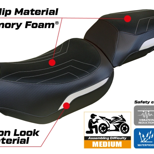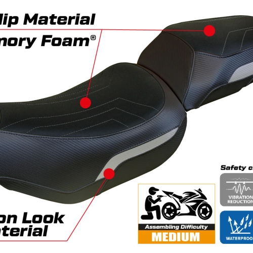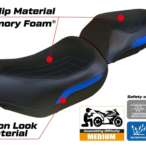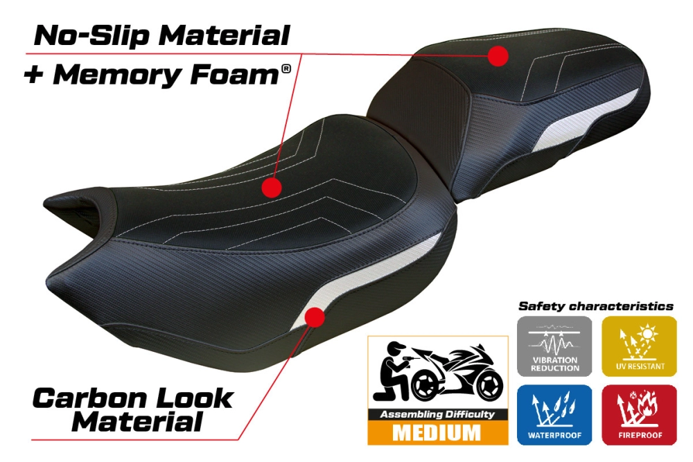 - Comfort system: This cover is on the outside exactly the same as all other covers, but is coupled on the inside with a special 2.5 cm layer of memory foam. Tappezzeria Italia is the only manufacturer to use Memory Foam technology, which improves riding comfort by reducing fatigue and vibration of the bike.
