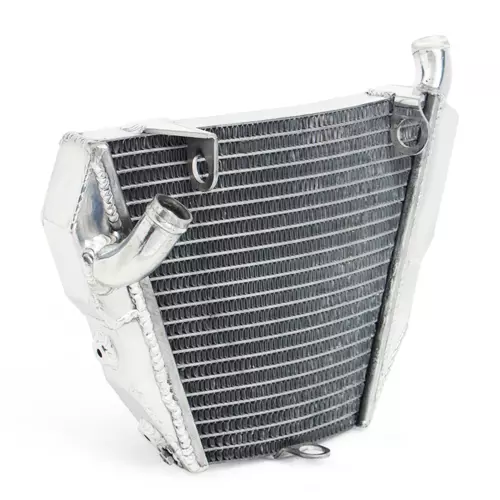 This radiator is designed to provide solid and fast cooling, even in extreme conditions. Its aluminum core is vacuum-welded, ensuring perfect sealing and increased resistance to thermal surges, especially in competition use.