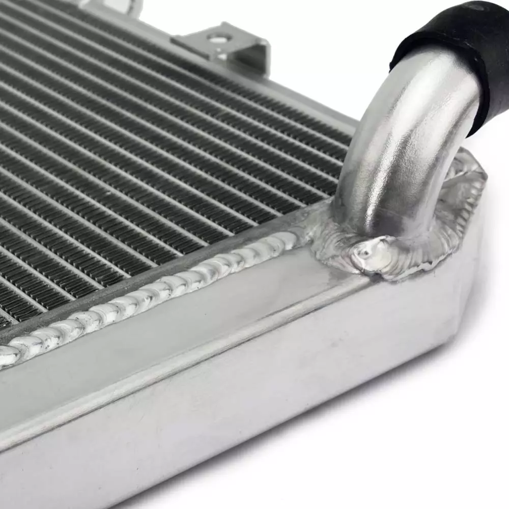 This radiator is designed to provide solid and fast cooling, even in extreme conditions. Its aluminum core is vacuum-welded, ensuring perfect sealing and increased resistance to thermal surges, especially in competition use.