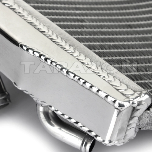 This radiator is designed to provide solid and fast cooling, even in extreme conditions. Its aluminum core is vacuum-welded, ensuring perfect sealing and increased resistance to thermal surges, especially in competition use.