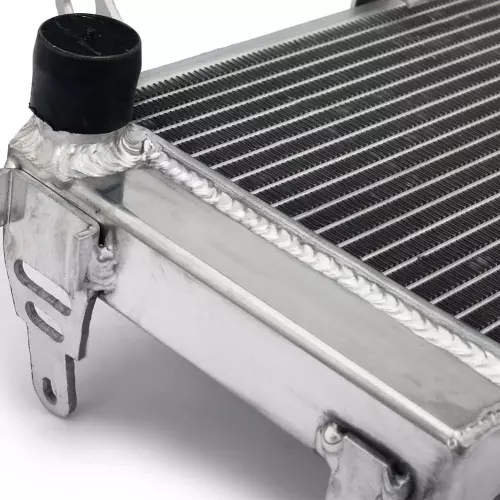 This radiator is designed to provide solid and fast cooling, even in extreme conditions. Its aluminum core is vacuum-welded, ensuring perfect sealing and increased resistance to thermal surges, especially in competition use.