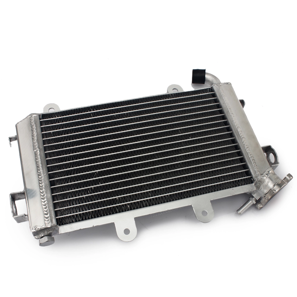 Optimize the cooling of your KTM 125 Duke 2011-2016/ 200 Duke 2012-2014 with this high-performance aluminum radiator. Designed to provide quick and durable cooling, it is made of polished aluminum for optimal heat dissipation. Its vacuum-welded core, without epoxy, ensures maximum strength and increased longevity, even in extreme conditions.
