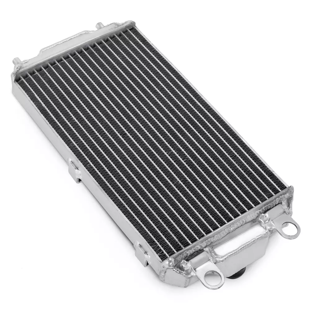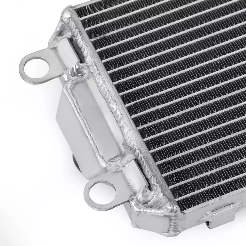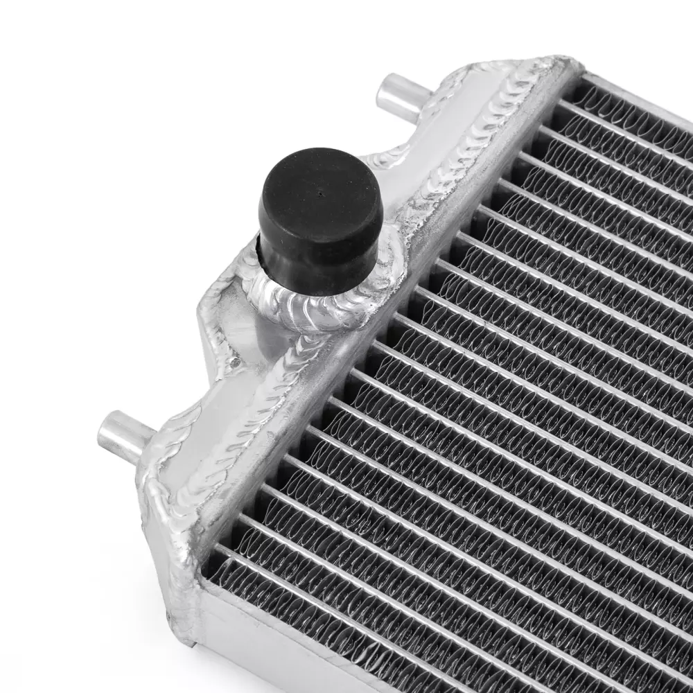 This radiator is designed to provide solid and fast cooling, even in extreme conditions. Its aluminum core is vacuum-welded, ensuring perfect sealing and increased resistance to thermal surges, especially in competition use.