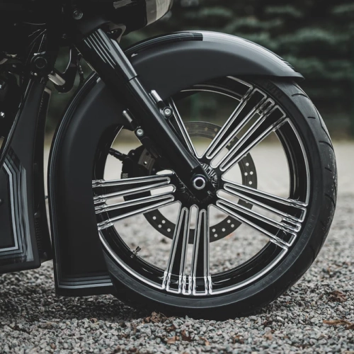 We present our new front fender for Harley-Davidson, designed for Fat 23x5.5" wheels, while retaining the original fork tubes. Perfect for your custom or Bagger project.