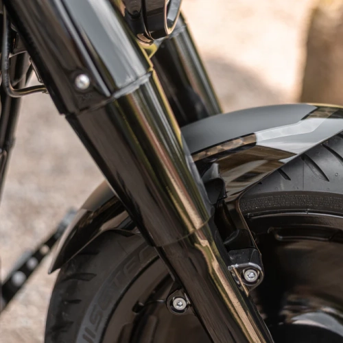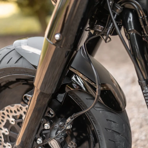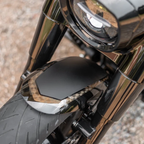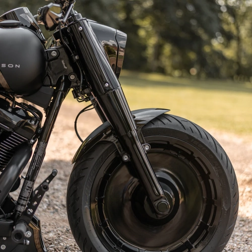 This fender is made of hand-laid fiberglass and gives your Softail Fat Boy M8 or Twin Cam a unique sporty and aggressive look.