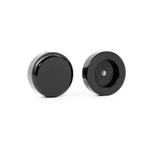 We know that small details bring big changes. That’s why we created this set of axle covers for your inverted front fork. These super high-gloss black powder-coated caps will cover the ends of your front axle with no modifications and give your Harley fork legs a cleaner, smoother look.