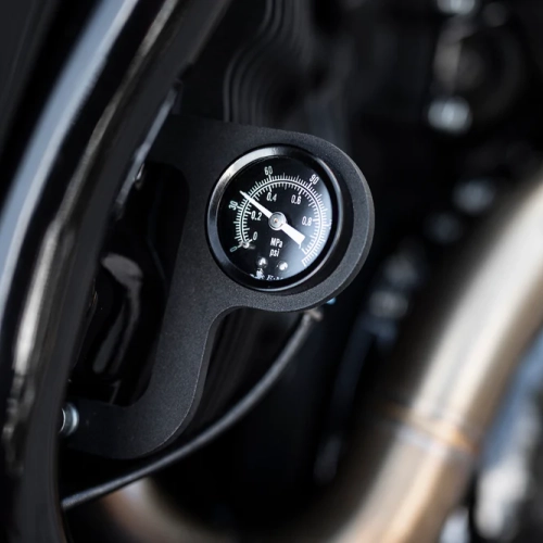 Black 6mm air pressure gauge kit for H-D V-Rod – rocker cover mount