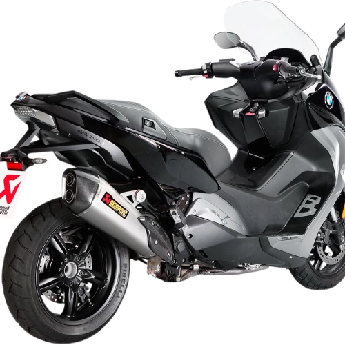 Akrapovic titanium slip-on silencer for scooters. Designed to improve power and torque levels throughout the rev range. Outer casing made of a special high-quality titanium alloy and completed with a carbon fiber end cap and heat shield. Weight reduced by 44.9% compared to the original system. A deep and unique Akrapovic sound underlines the scooter's sporty character. Simple plug-n-play installation.