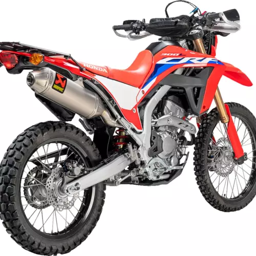 Akrapovic Line titanium slip-on silencer for HONDA CRF300L/Rally 21-24. This silencer is made of race-proven materials: lightweight titanium for the end cap and outer shell and high-quality stainless steel for the link pipe. Its weight is thus reduced by more than 49% compared to the pi.