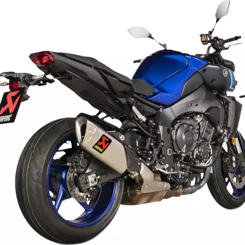 Akrapovic slip-on silencer for YAMAHA MT-10 22-24. Link pipe, end cap and outer shell are made of high-quality lightweight titanium, sandblasted for a refined appearance. Installs quickly and easily, without the need to change the map, and provides excellent throttle response. The kit includes a forged carbon fiber heat shield.