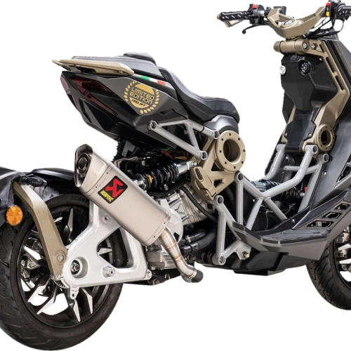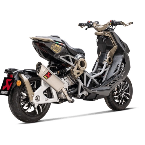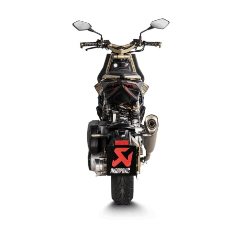 Akrapovic Line slip-on silencer for scooters and mopeds. Easy installation and an excellent price-to-performance ratio. More power, more torque, less weight, and a unique Akrapovic sound.