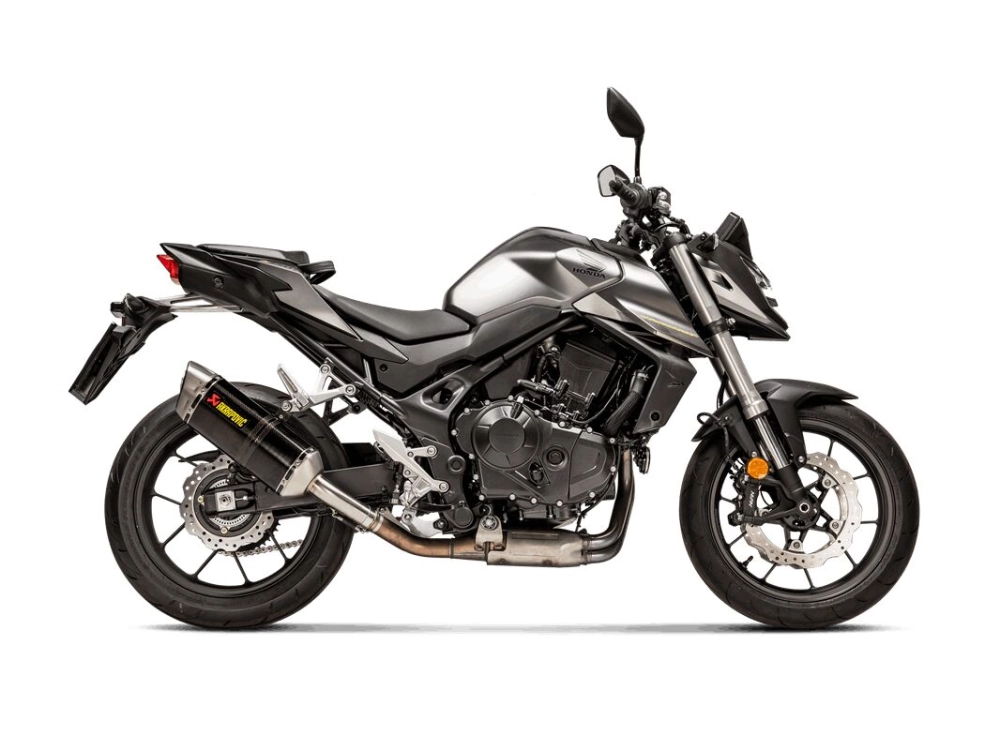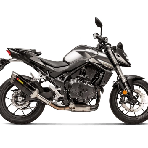 Akrapovic slip-on muffler for HONDA CB750 Hornet 23-24. Easy installation and excellent price-performance ratio. More power, more torque, less weight and a unique Akrapovic sound. Muffler wraps can be made of stainless steel, titanium or carbon fiber. Titanium or carbon fiber end caps. Optional stainless steel or titanium headers (sold separately) allow the upgrade to a full exhaust system when combined with an Akrapovic slip-on muffler. Optional stainless steel or titanium link pipes (sold separately) can be combined with Akrapovic slip-ons. Carbon fiber muffler brackets and heat shields are available separately for some models. Catalytic converters designed to perform and offer you the characteristic Akrapovic improvements in sound and efficiency. The honeycomb metal structure incorporates precious metals such as palladium, rhodium, or platinum into its surface. These metals transform harmful carbon monoxide and unburned hydrocarbons present in exhaust gases into non-toxic carbon dioxide and water vapor.
