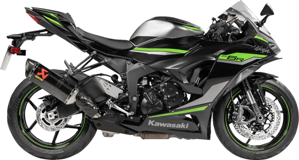 Akrapovic slip-on silencer for KAWASAKI Ninja ZX-6R 09-25. The Akrapovic slip-on silencer is the first thing to consider when tuning your exhaust. Easy installation and excellent value for money. More power, more torque, less weight and a unique Akrapovic sound. Carbon fiber silencer casing and end cap.
