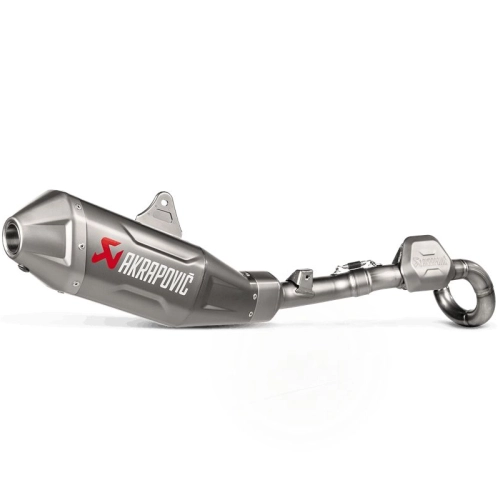 Evolution Line full exhaust system for off-road use. Akrapovic Evolution Line full exhaust system for off-road use. Evolution Line is the flagship of the Akrapovic range. Used and tested by the best official racing teams. Each model is unique and designed to increase engine performance while reducing weight for optimized motorcycle handling. Made entirely of titanium. The exhaust systems comply with FIM noise standards. The welded mounting brackets are distinguished by their long service life and the end cap is made of titanium. The outer shell of the silencer has a new, easy-to-maintain coating that offers improved scratch resistance. Evolution Line (titanium)