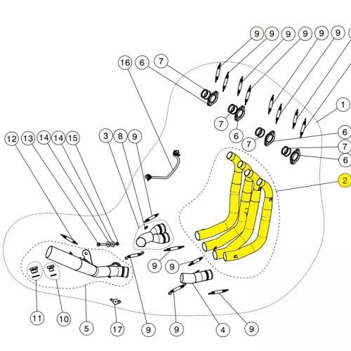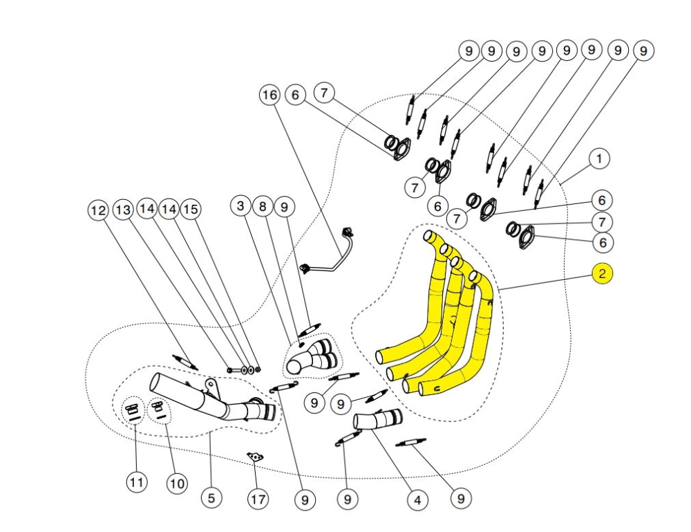 Manifold for Akrapovic 4 into 1 exhaust line.