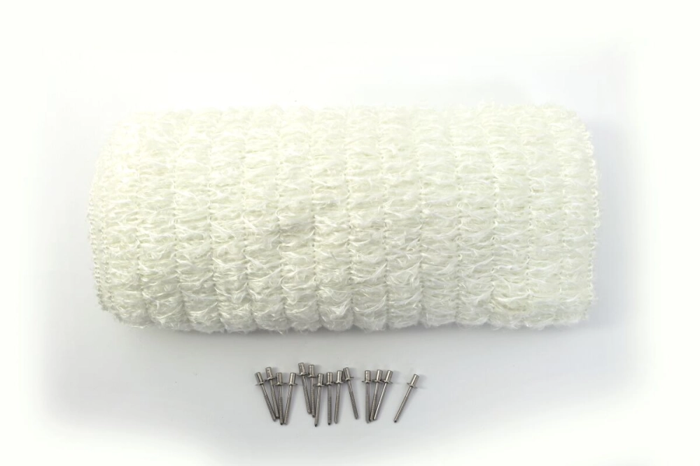 Muffler Reconditioning Kit. The muffler reconditioning kit includes damping material, tapes, rivets, and stickers.