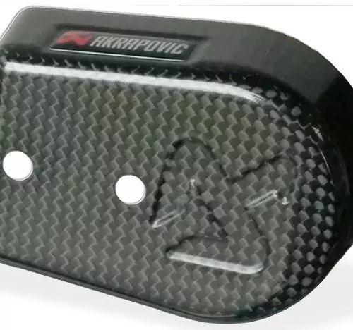 Akrapovic carbon fiber cylinder head cover to replace the stock exhaust elbow protector. Please see the motorcycles compatible with the heat shield.