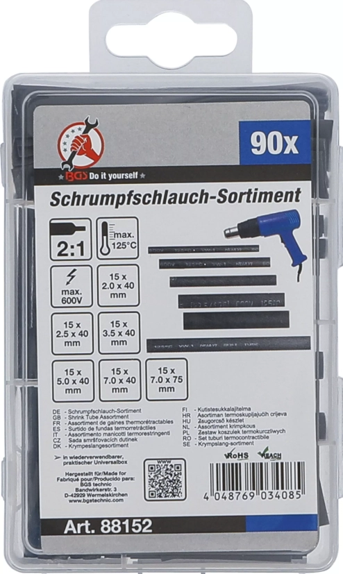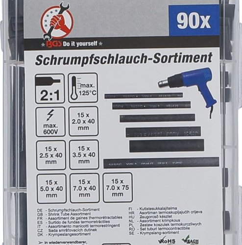 Heat Shrink Tubing Assortment | Black | 90 Pieces