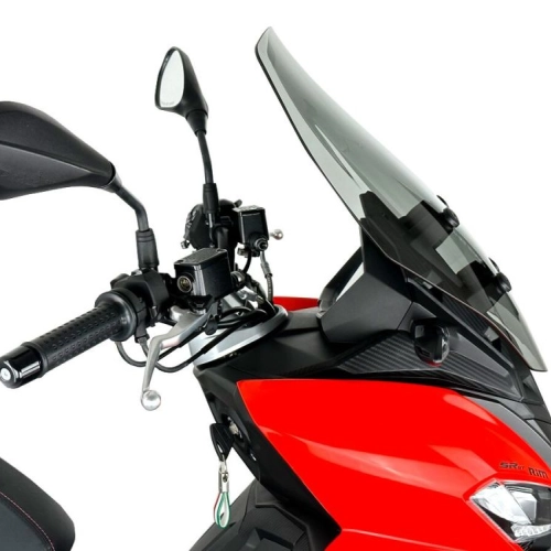 WRS Touring Aprilia SR Smoked Windscreen made of high-quality PMMA plexiglass. Annoying turbulence on the shoulders and helmet is eliminated. Increased protection provided by the Windscreen. Integrates perfectly with the line of the motorcycle for an even more attractive look.