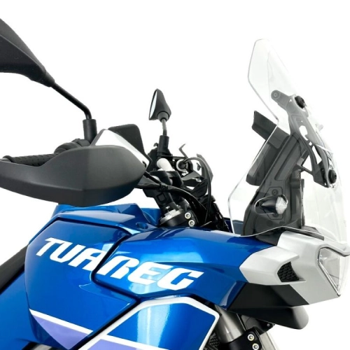 WRS Standard Plus Aprilia TUAREG Transparent Windscreen, made with high quality materials. Integrates perfectly with the line of the motorcycle, for an even more captivating look. Increased protection by the Windscreen and maximum comfort. Manufactured according to the strictest safety standards and know-how guaranteeing maximum resistance and transparency.