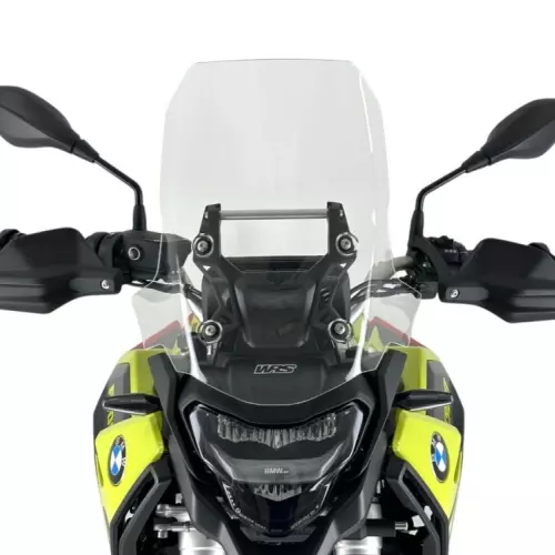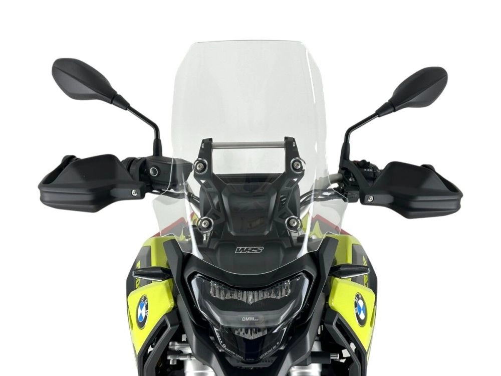 WRS Caponord BMW F900GS Transparent Windscreen made of high-quality PMMA plexiglass. Annoying turbulence on the shoulders and helmet is eliminated. Increased protection provided by the Windscreen. Integrates perfectly with the line of the motorcycle for an even more attractive look.