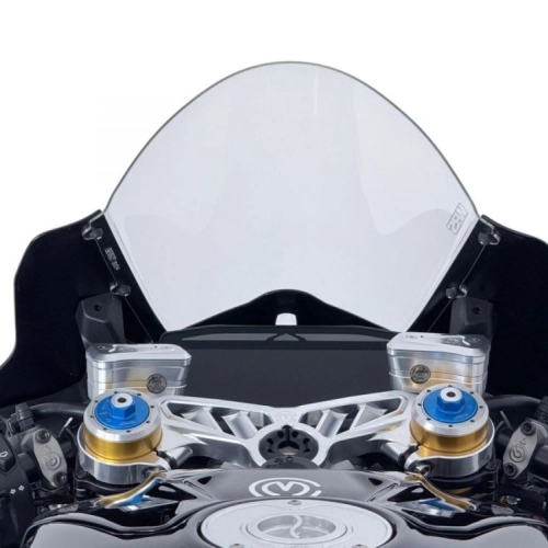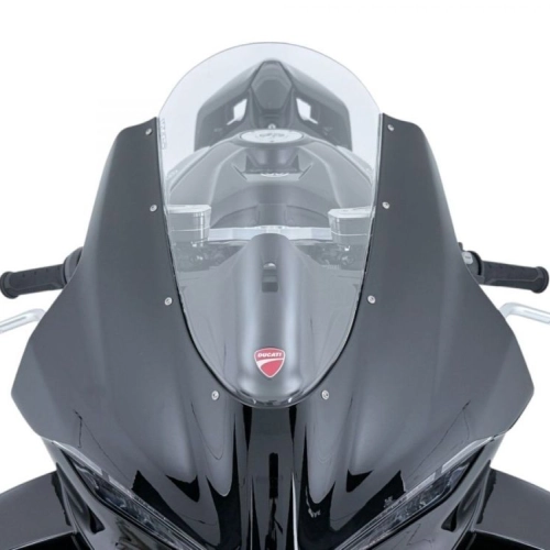 WRS Sport Ducati PANIGALE V4 Transparent Windscreen, identical to that used for the Windscreens of the MotoGP and Superbike world championships. Only 2 mm thick for optimal lightness and flexibility, with increased impact resistance in the event of a fall. This Windscreen is ideal for those who want greater protection from the wind without altering aerodynamics. Manufactured according to the strictest safety standards and craftsmanship, ensuring maximum strength and transparency. The design, studied in detail, integrates perfectly with the line of the motorcycle and gives it an even more attractive appearance.