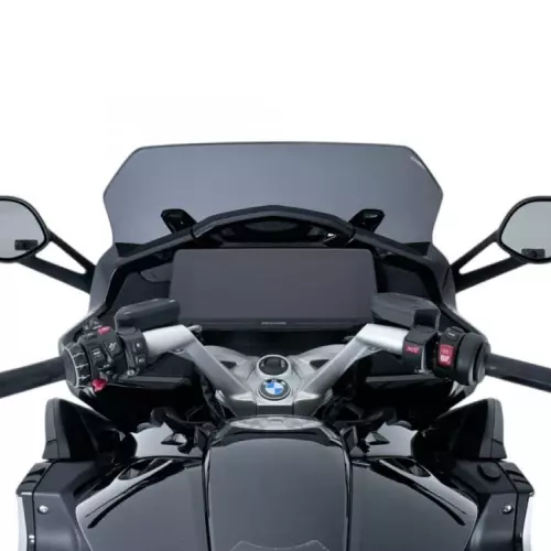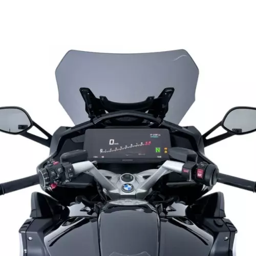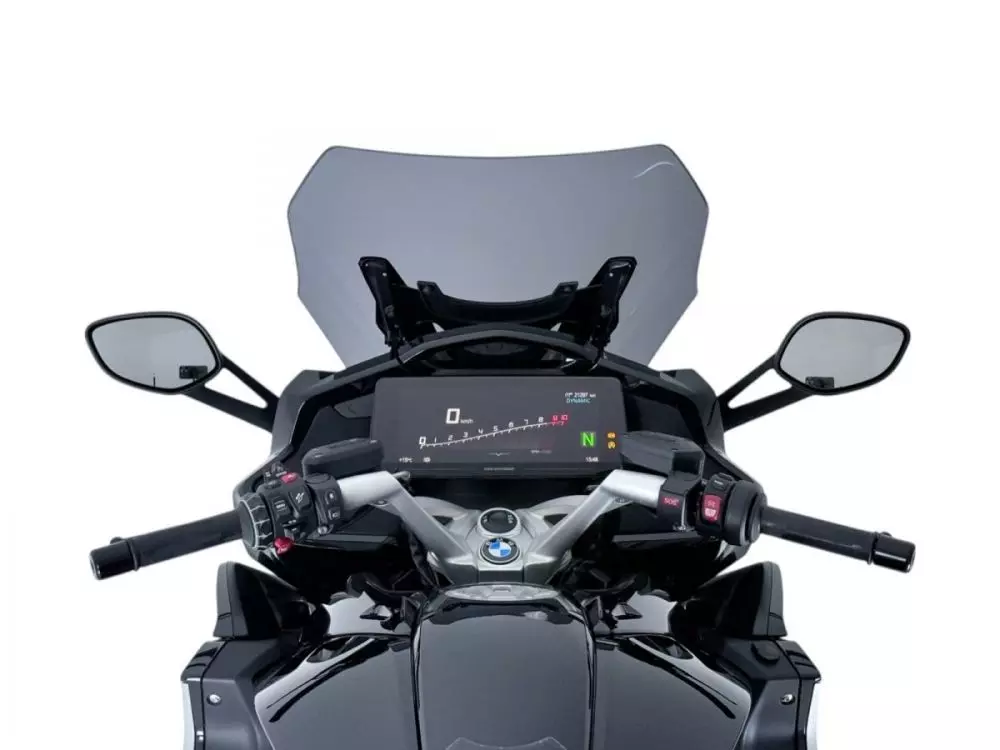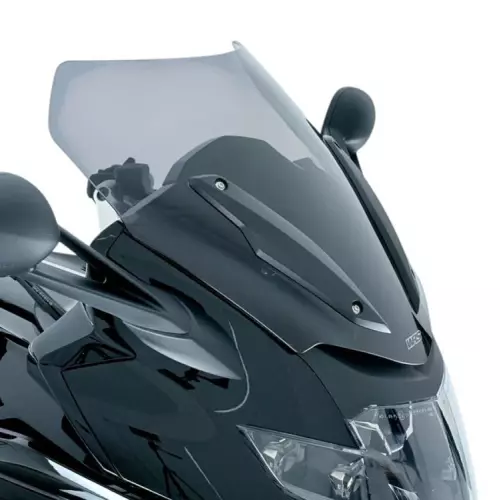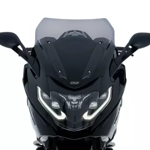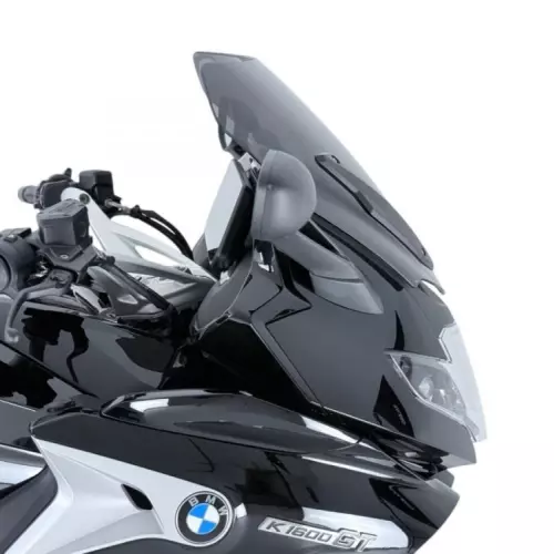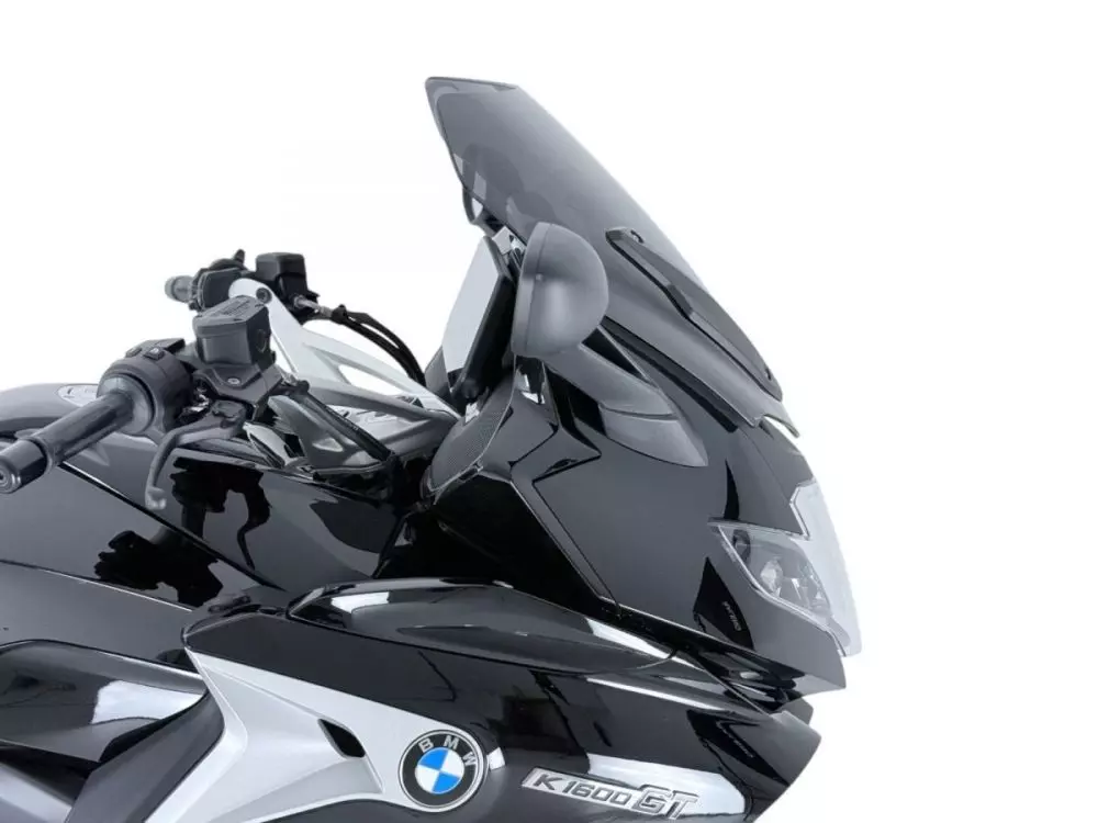 WRS Sport Windscreen BMW K 1600 GT Smoke Black . Original Windscreen: L 55 cm H 52.5 cm. The WRS Standard Windscreen measures: L 59.5 cm H 54.5 cm, made of high quality PMMA plexiglass, 5 mm thick. Thanks to this Windscreen, annoying turbulence on the helmet as well as air on the shoulders are eliminated, ensuring optimal protection even on long journeys. Standard version, same height as the original, slightly wider, ideal in all circumstances for riders of medium to large size. The design, studied in the smallest details, integrates perfectly with the lines of the motorcycle.