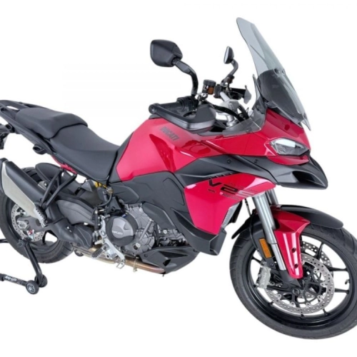 WRS Touring Windscreen Ducati MULTISTRADA V2 High quality smoke, 3 mm thick. Original Windscreen H 48 cm W 37 cm. The Ducati WRS Touring Windscreen is 3.5 cm higher than the original. Manufactured according to the strictest safety standards and respecting the know-how ensuring maximum resistance and transparency. The lines of this windshield reduce the turbulence generated by the air. Touring version, ideal for those who want greater protection against the air, especially in the shoulder area. The design, studied down to the smallest detail, integrates perfectly with the line of the motorcycle and gives it an even more attractive look. This design optimizes the overall aerodynamics of the motorcycle, increases stability and reduces turbulence, thus improving the riding experience at high speeds. This Windscreen has a central slot specially designed to channel the airflow upwards and reduce the direct impact of the wind on the rider.