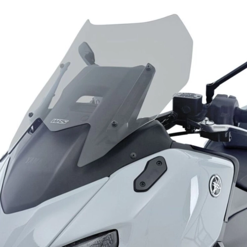 WRS Intermedio Windscreen Yamaha T-MAX TECHMAX Smoke, made of high quality PMMA plexiglass, 3 mm thick. Even the passenger enjoys the maximum comfort offered by the increased protection of the Touring fairing. Thanks to this Windscreen, annoying turbulence in the helmet area as well as air on the shoulders are eliminated, ensuring optimal protection even on long journeys. The design, studied down to the smallest detail, integrates perfectly with the line of the motorcycle and makes it even more attractive.