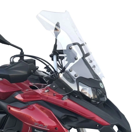 Benelli TRK 502/X Transparent Wind Deflectors, identical dimensions to the original, deflectors made with high quality materials, thickness 4/3 mm. Designed according to the strictest safety standards. The installation of side deflectors increases driving comfort. Allows to reduce air pressure on the shoulders and arms.