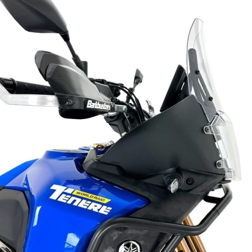 Yamaha TENERE 700 Matte Black Wind Deflectors, identical dimensions to the original, Yamaha wind deflectors designed with high quality Black Materials, thickness 4/3 mm. Designed according to the strictest safety standards. The installation of the Yamaha side wind deflectors increases driving comfort. Allows to reduce air pressure on the shoulders and arms.